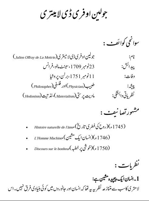 Insan Aik Machine انسان ایک مشین Man a Machine Julien Offray de La Mettrie